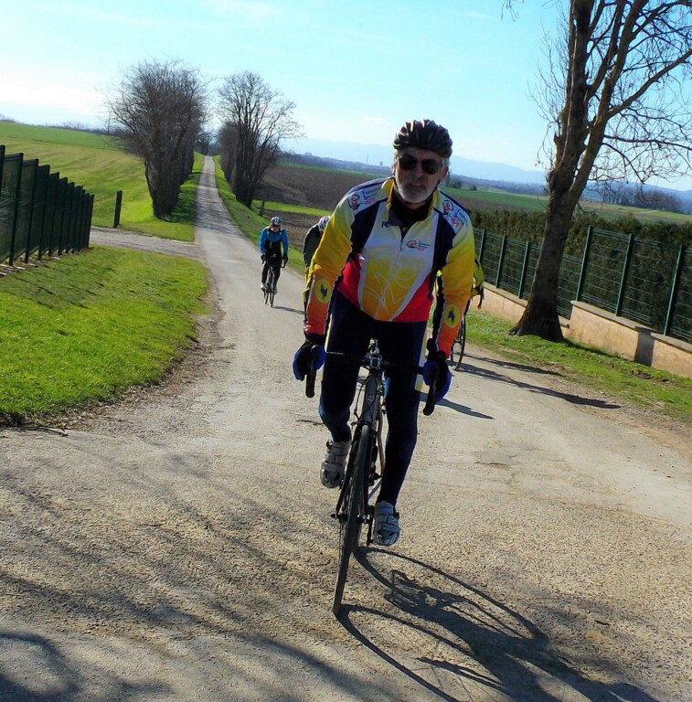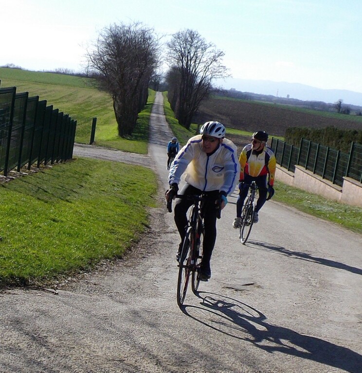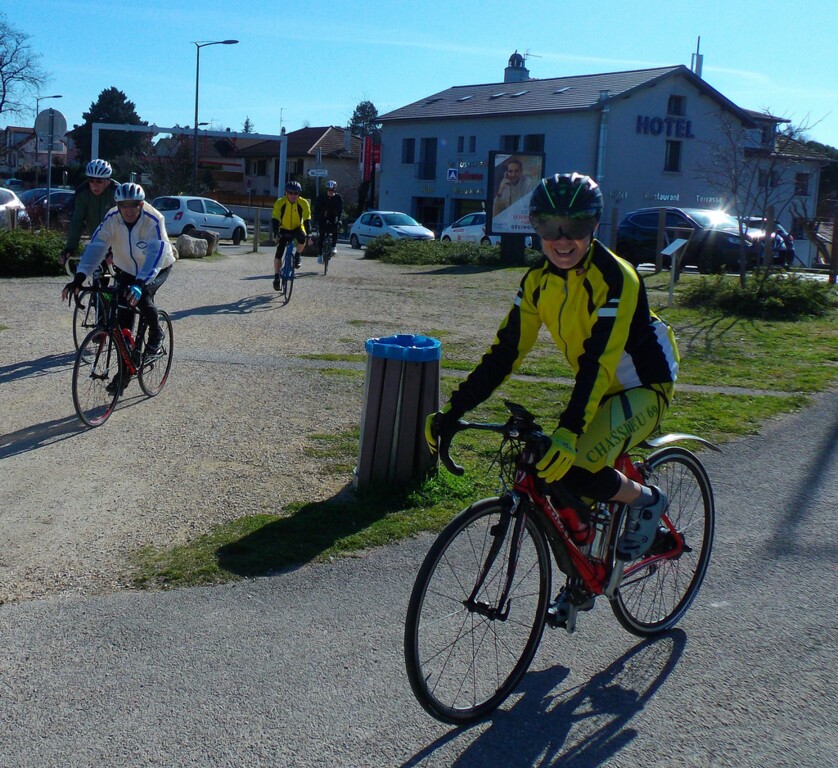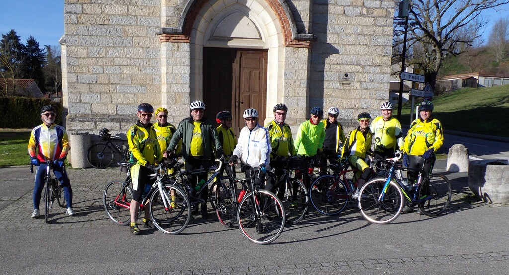 Un très beau parcours dans la Dombes piloté par Patrick et Cathy Gimenez avec la montée du Mas Rillier puis vers St Marcel, Birieu, Le Montellier et retour classique par Ste Croix. Un super beau temps et une ambiance toujours aussi conviviale.